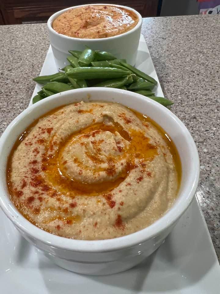 Classic Hummus and Roasted Red Pepper hummus